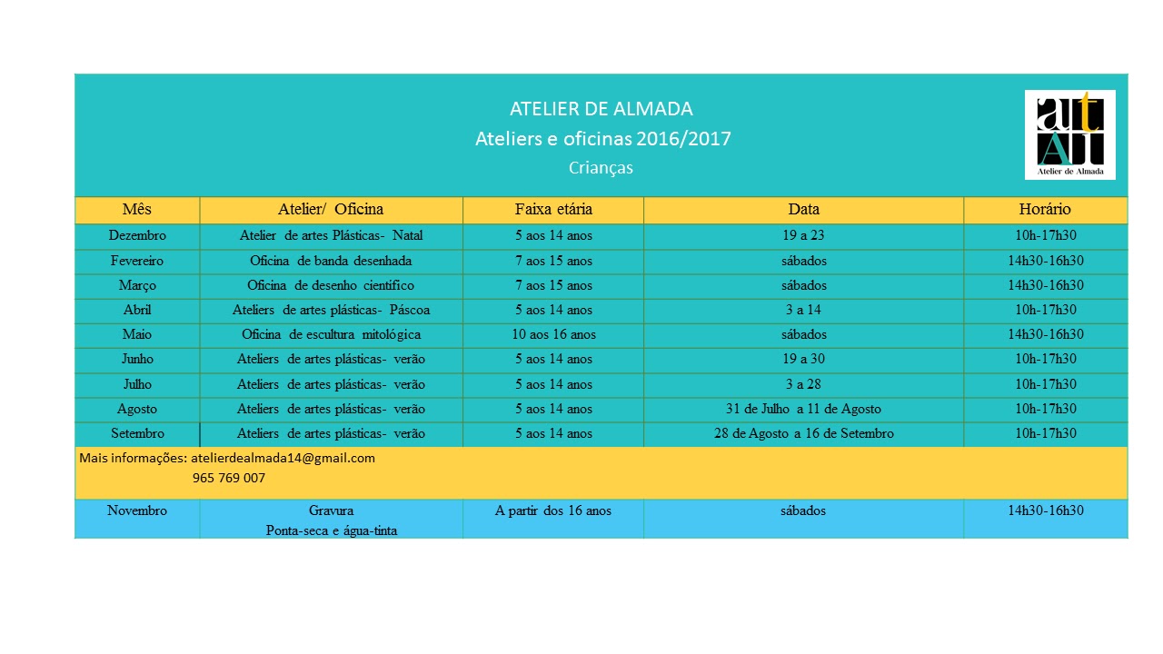 Para umas espectaculares férias artísticas, nada como, poder contar com os ateliers de artes plásticas do Atelier de São Bento e do Atelier de Almada.